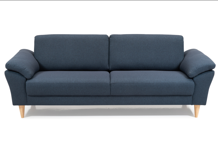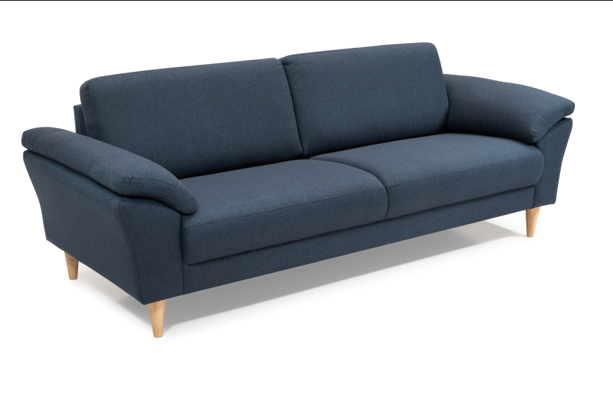 3 pers. sofa med 2 sæder. Kraftig stof. Fås også læder.
