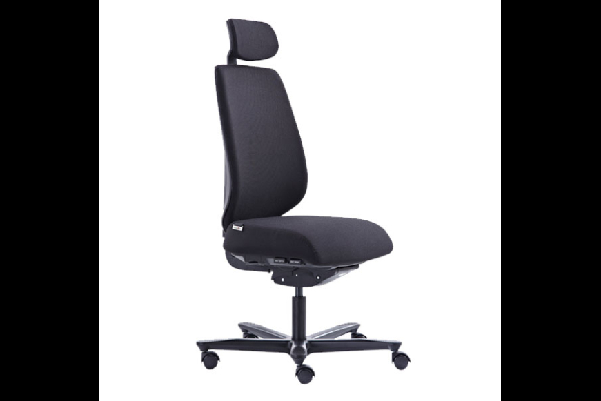 Behagelig kontorstol med en ekstrem god siddekomfort og integreret nakkestøtte. Sædet er i memory-skum, som aflaster bagdelen og baglåret, så man kan sidde ned i længere tid. Kontorstolen har en høj beklædt ryg, højdejustering, låsbart rygvip, sædedybderegulering samt justering af ryghøjden. Stolen er sort med sort lakeret metal krydsfod og bløde hjul.