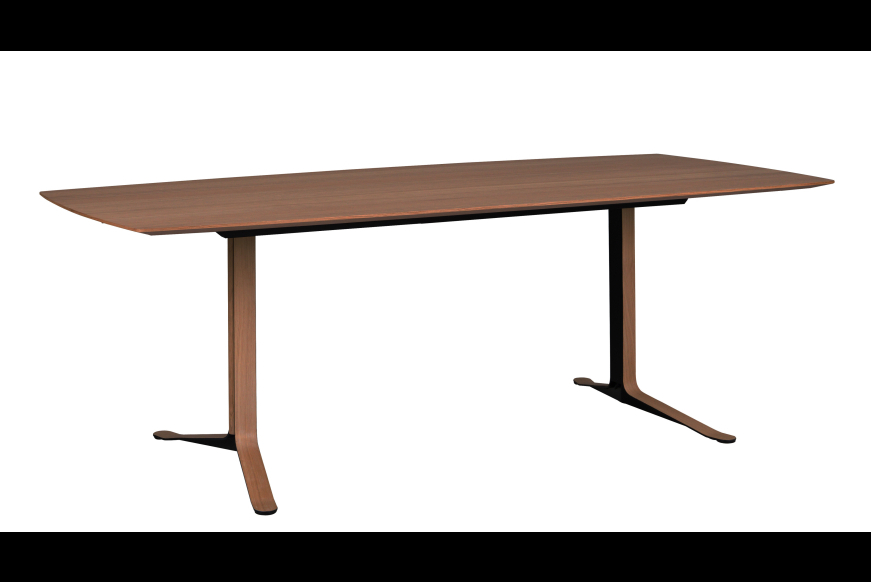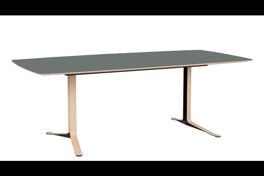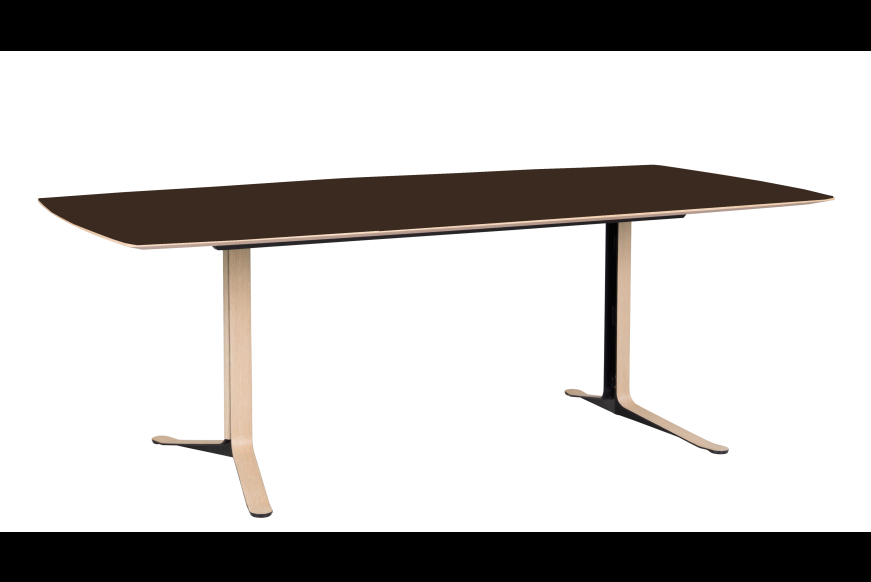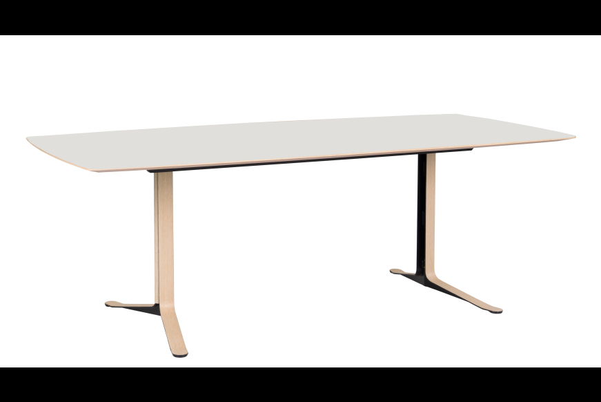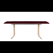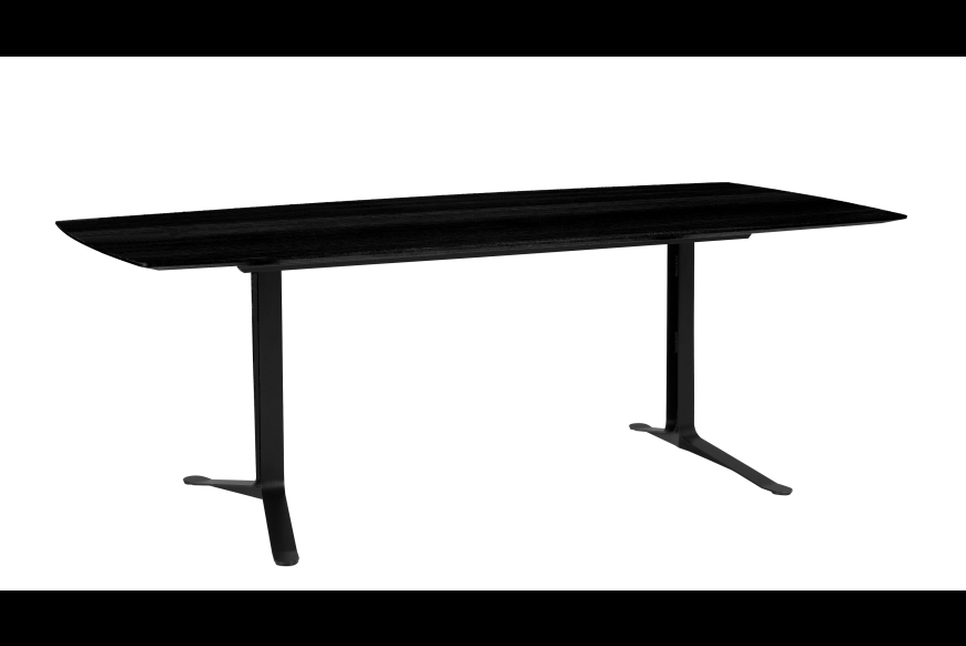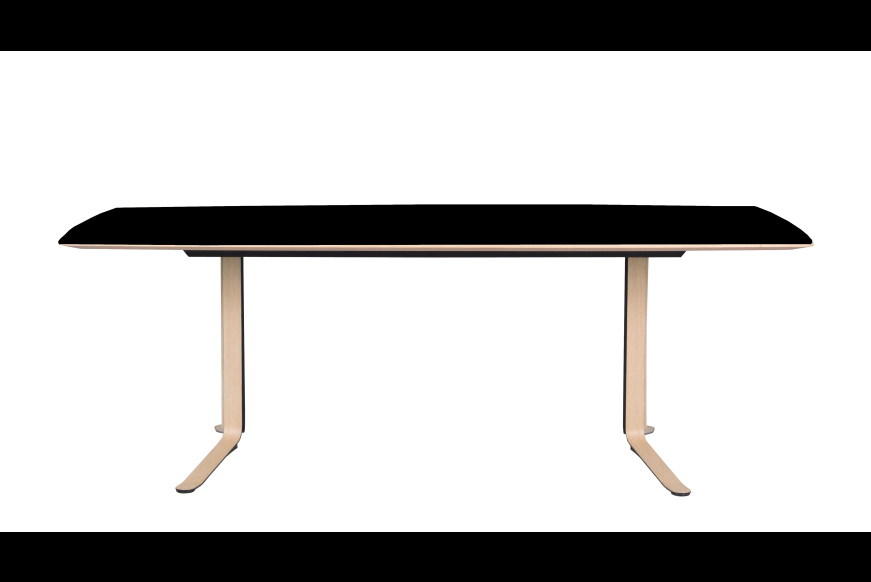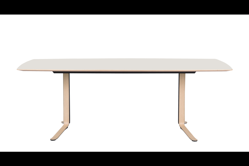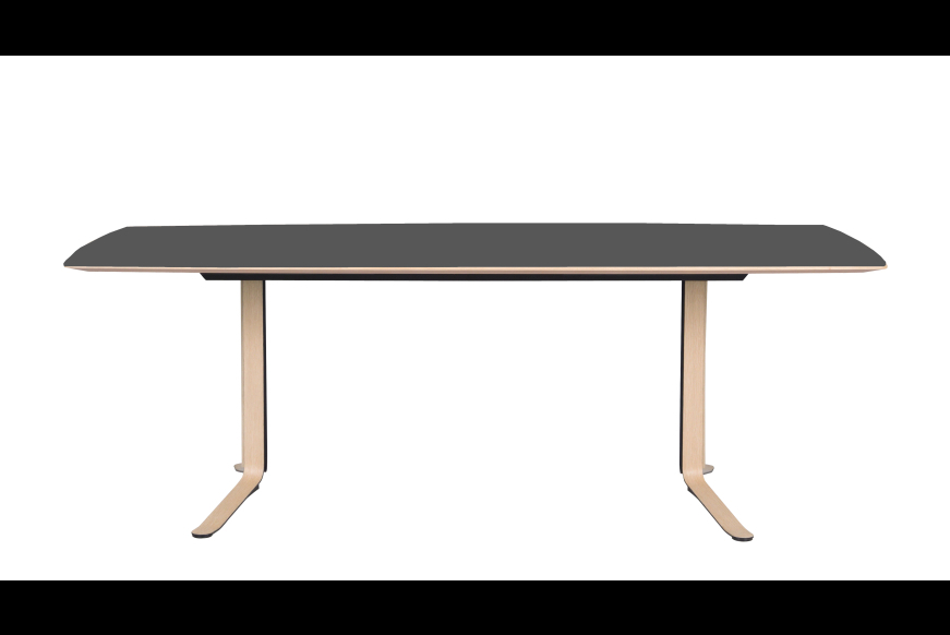 Rektangulært spisebord til køkkenet eller stuen. Bordet er elegant med sin bådformet bordplade. Bordpladen kan fås i forskellige farver og materialer. Fusion leveres med metalstel, sort metalstel eller fineret metalstel, skriv hvilket stel der ønskes i en kommentar. Tillægsplader og magasin bestilles separat - spørg gerne.