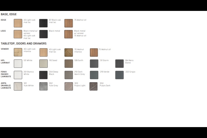 Bordpladen kan fås i enten finer, HPL laminat, sten/marmor laminat eller Fenix nano laminat - vælg under variant eller spørg gerne og vi finder lige netop det bord, som passer bedst hjemme hos dig.