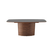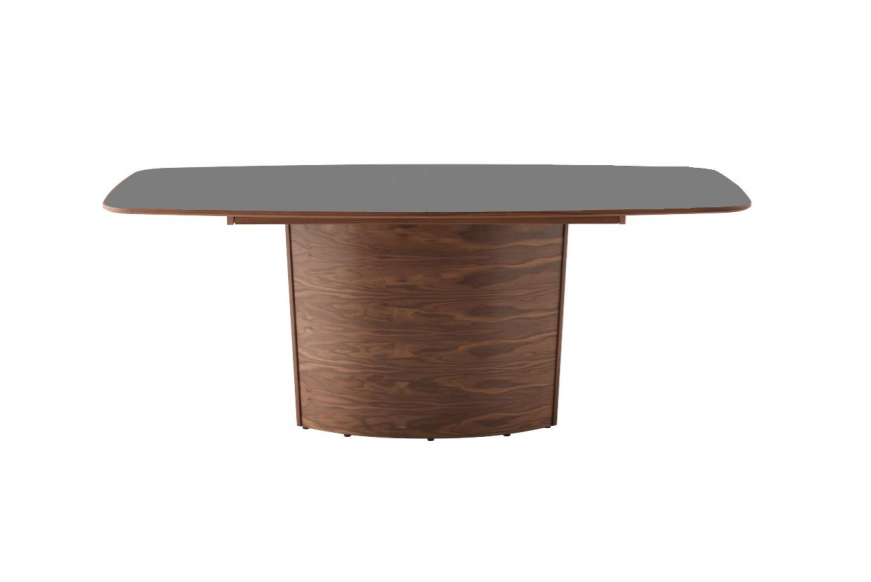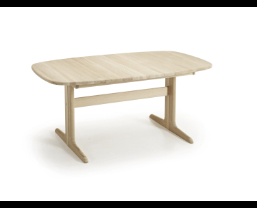 SM117 er med en rektangulær bordplade med rundede hjørner. I denne model består basen af en centreret søjle med tillægsplader gemt i. Mål: B: 192 D: 102 H: 74 cm.