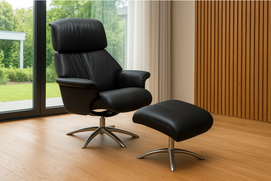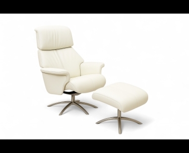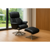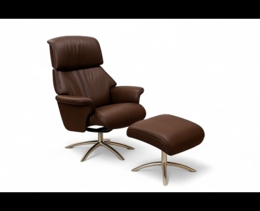 Info: Calibra høj lænestol med justerbar nakkeregulering og tilhørende fodskammel.
