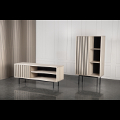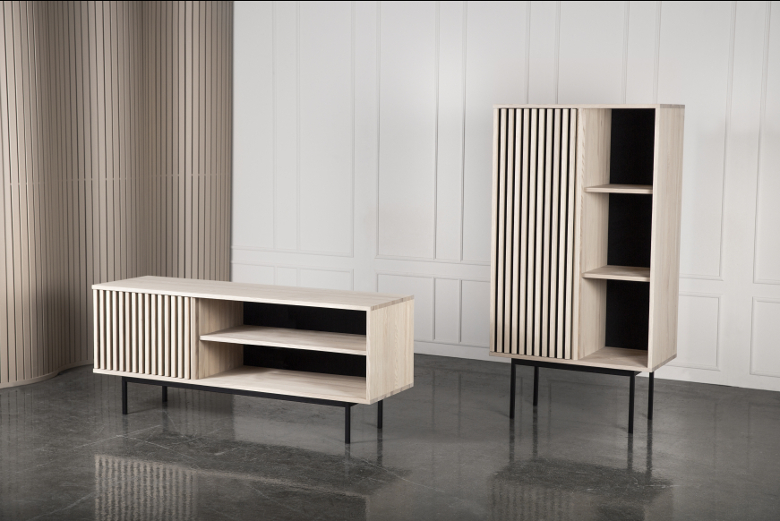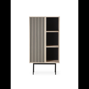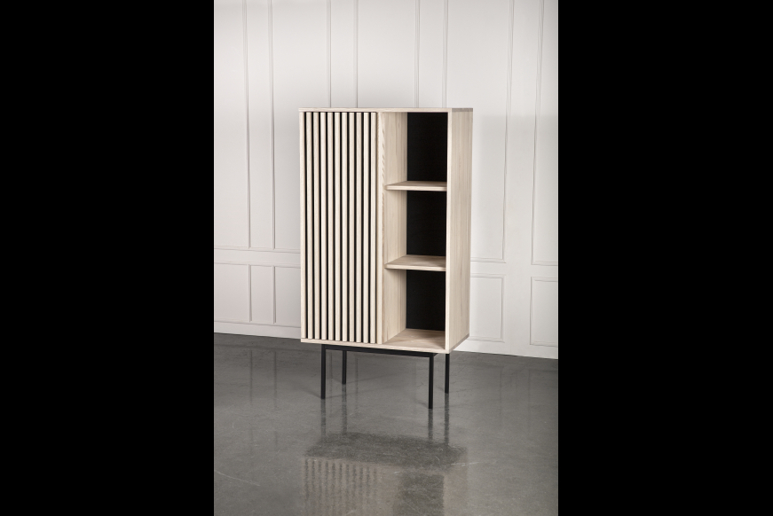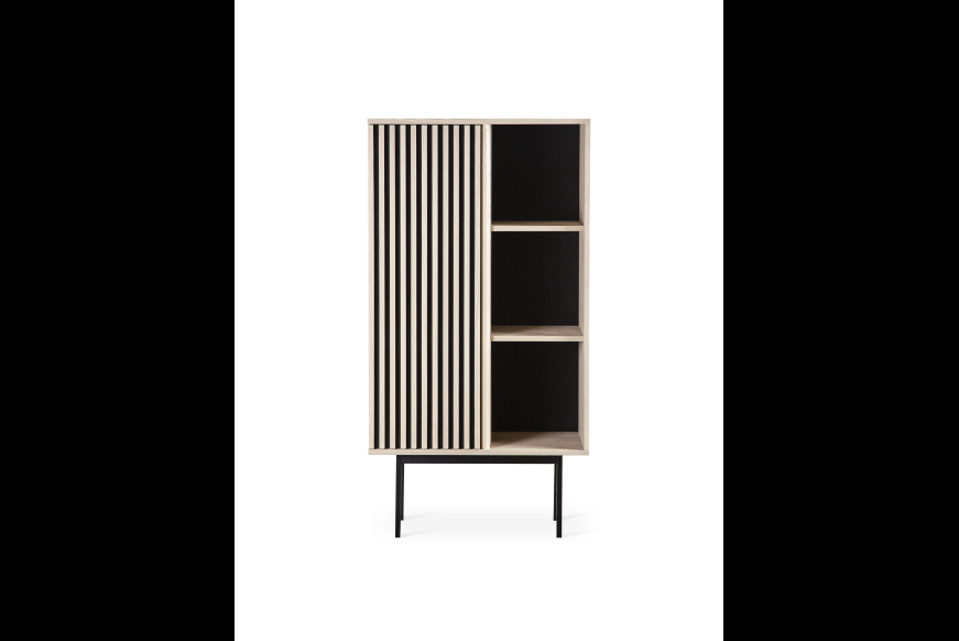 AKUSTIK SKAB fra Kristensen & Kristensen er designet med ønske om at forbedre akustikken i boligen samt opretholde et pænt udtryk. Kombinationen af trælameller og filt, er ikke blot tænkt ind i designet for at fornøje øjet, men i lige så høj grad for at absorbere rumklang. Skabet er vist her i massiv hvidolieret ask med sort metal sokkel.