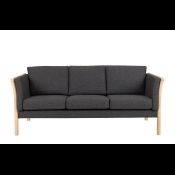 På billedet ses 3 pers. Dorte sofa, med gråt uldbetræk Misha 432-04 og med ubehandlet bøgetræs stel.
