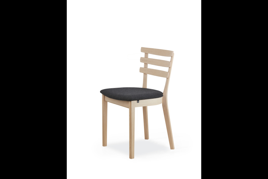 Nydelig dansk produceret spisestol med eg hvidolie og antracit touche uldfilt. Fås i andre farver.