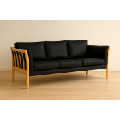 På billedet ses 3 pers. Dorte sofa, med kampagne læder og ege gavle.