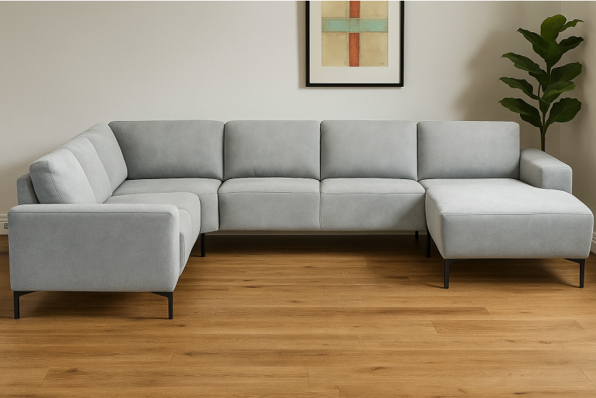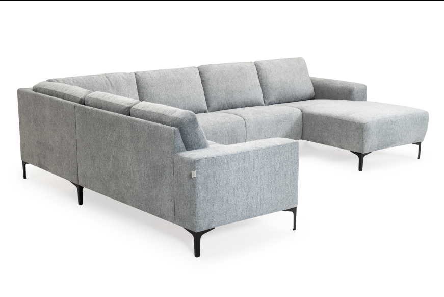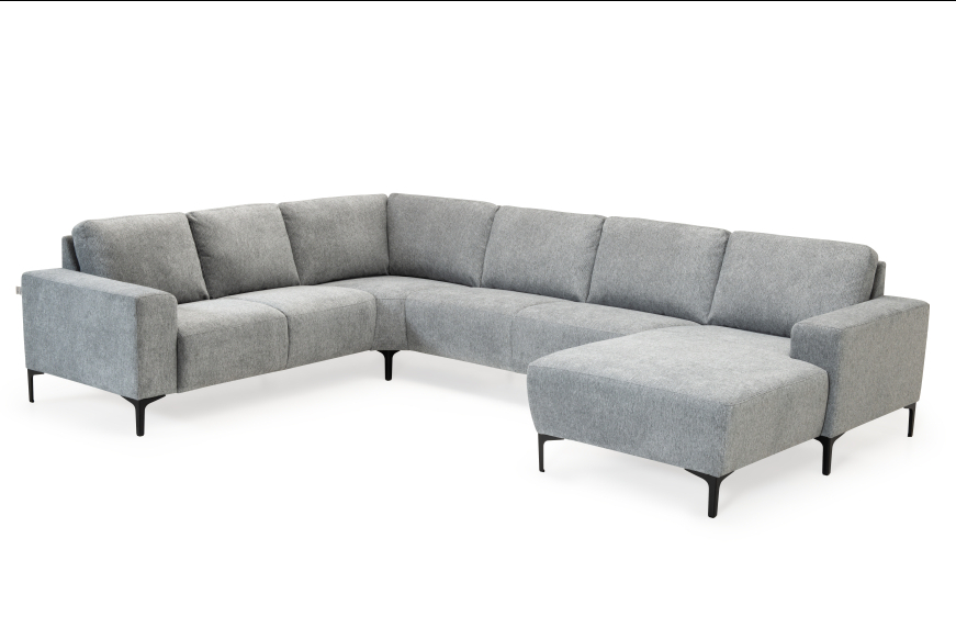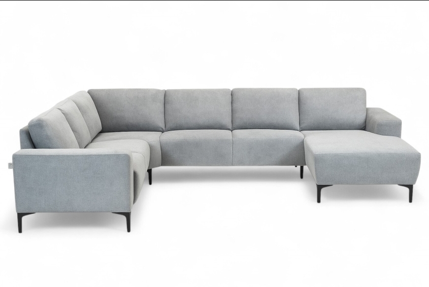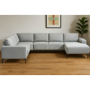 U-sofa med chaiselong / hjørnesofa. Fås også i læder.