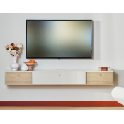 Let og elegant tv møbel i hvid. Med stof klap i hvid, som lyd og signal let går igennem. Samt 2 stk. skuffer.