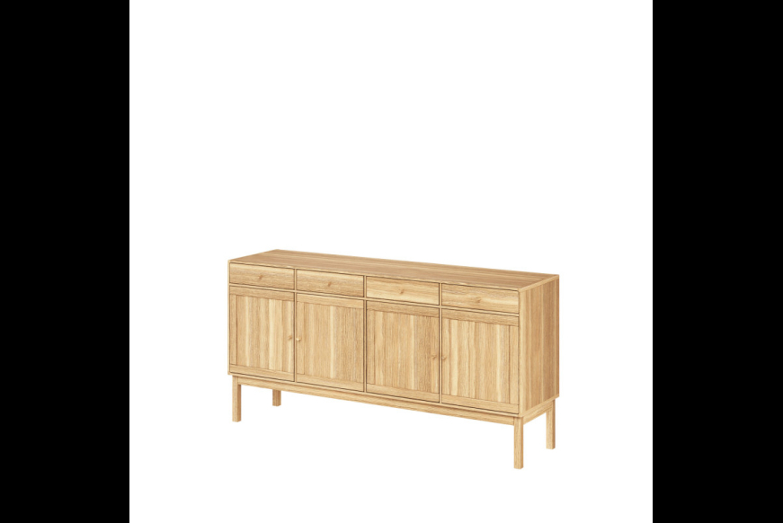 Rimme skænken er udstyret med 4 skuffer og 4 trælåger. Både skuffer og låger har soft-close funktion, der giver bløde lukninger og skåner møblet på sigt. I alle skuffer er der sort filt i bunden, men hver låge gemmer på en flytbar træhylde.