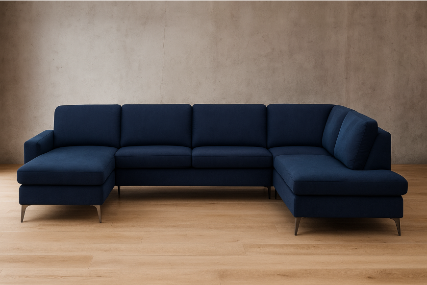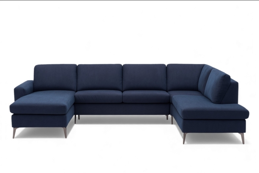Klassiske U sofa m. chaiselong og openend. Med kortere sædedybde.