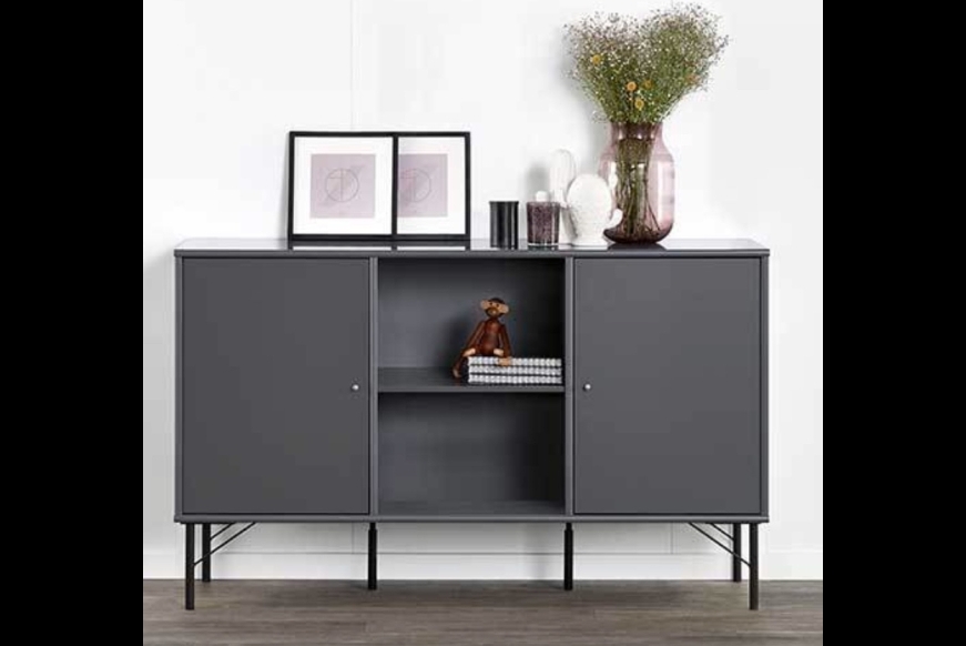 Let smal skænk i antracit inkl. ben og 2 låger