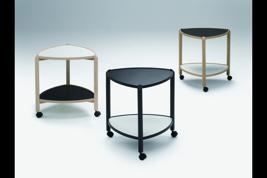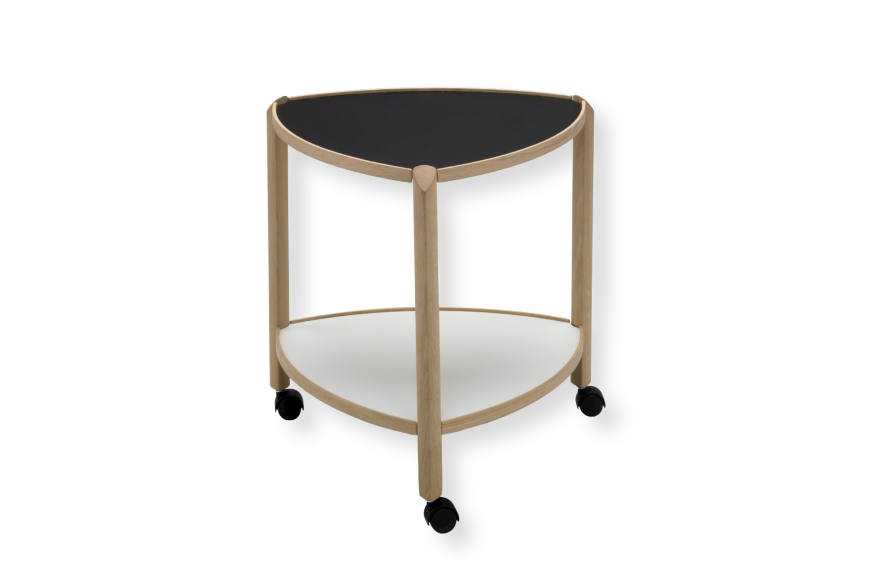 Klassisk dansk produceret bakkebord på hjul.I eg natur og med vendbar melamin plade.