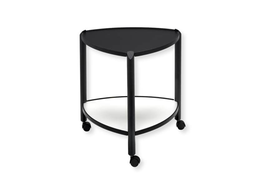 Klassisk dansk produceret bakkebord på hjul.I lakeret sort bejdset eg og med vendbar melamin plade.
