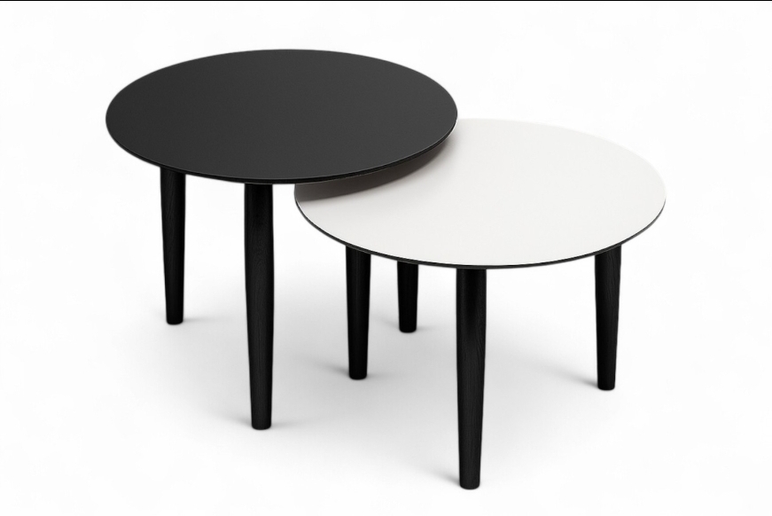 Topplade: Sort laminat ( Ø 60 cm ) / Hvid laminat ( Ø 60 cm ) med sort kant