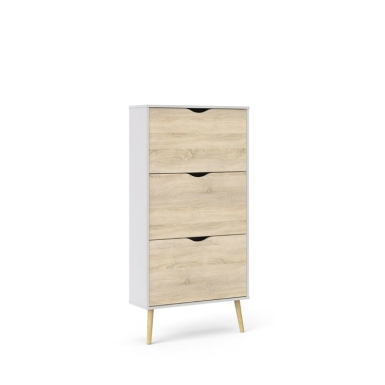 Du kan også vælge det lækre Delta skoskab, der med sin smarte størrelse passer ind i de fleste hjem. Skoskabet er inddelt i tre store rum, som kan indeholde mange sko og skabe god plads på gulvet. Skabet er udført i en flot hvid melamin, som brydes af de flotte låger i natur, hvilket giver en god kontrast. Skabet er med massive ben af eg, hvilket sikrer et stabilt fundament for dit skoskab. På trods af skabets eksklusive udseende og tidløse design fås det til en billig pris.