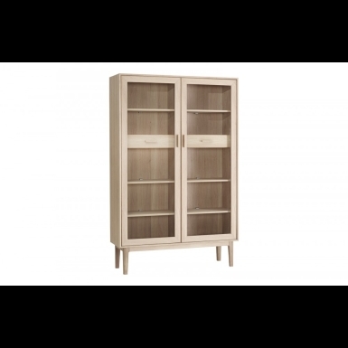 Vores vitriner fås både som elegante og rummelige modeller med god plads til stel, porcelæn og andre effekter. Skabene fås med hylder og låger i glas med rum til at eksponere det flotte spisestel eller de dekorative pyntegenstande. Skabene fås i flere forskellige træsorter, fx eg, bøg, valnød, kirsebær og mahogni, så der er rig mulighed for at vælge en træsort, der passer til boligindretningen i dit hjem.