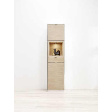 Med en vitrineløsning får du en både funktionel og æstetisk flot løsning til opbevaring af boligudstyr og ejendele. Blandt vores modeller finder du skabe med indbygget LED lys, så skabets indhold bliver flot belyst. Flere af vores møbler har gode muligheder for individuel tilpasning, og du har fx også mulighed for at vælge mellem ben eller sokkel til dit vitrineskab. Søger du en kombinationsløsning, så har vi vitriner med både skabe og skuffer, hvor du kan opbevare dine effekter. Vores sortiment dækker desuden elegante og funktionelle overskabe med glaslåger og tilhørende reol for en fuldendt opbevaringsløsning til dit hjem.